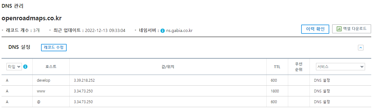 EC2에 배포한 후 Elastic IP에 가비아에서 구입한 도메인을 연동했다.