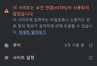 HTTPS로 접속해도 인증서가 설치되어있지 않다면, 위와 같이 보안 관련 경고가 뜬다. SSL 인증서를 설치해야 하는데, 무료로 인증서를 발급받을 수 있는 Let's encrypt를 사용했다.