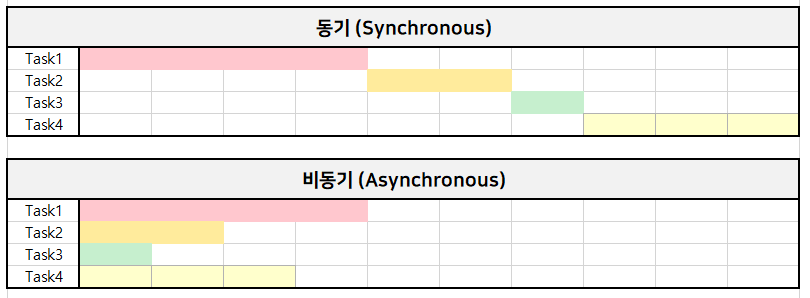 동기는 실행 흐름을 파악하기 쉽지만 느리다는 특징이 있고, 비동기는 빠르고 효율적이지만 실행 흐름을 파악하기 어렵다는 특징이 있다.