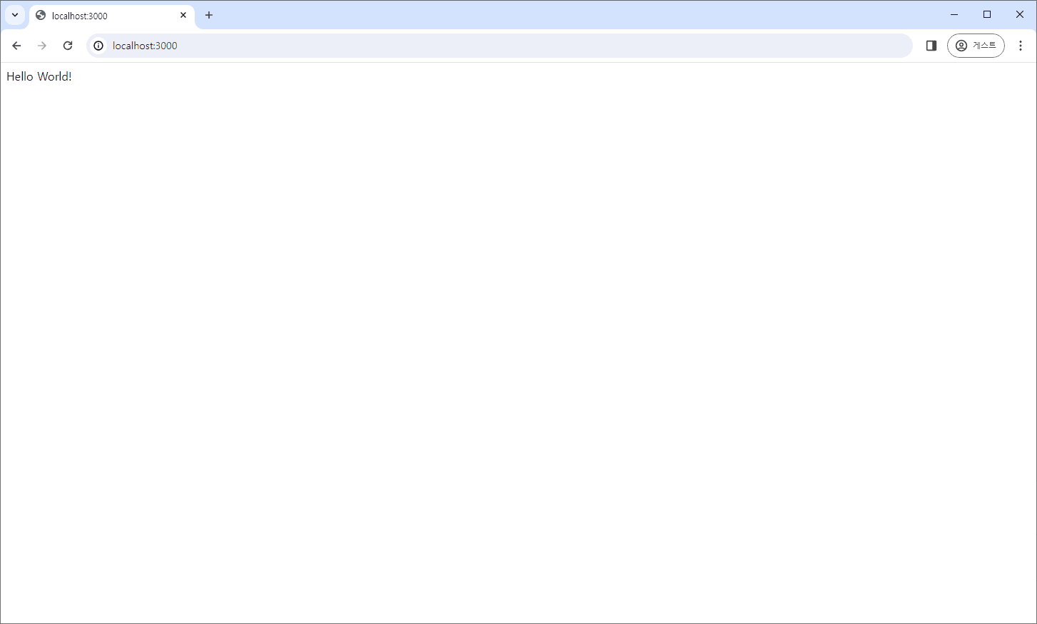 localhost:3000에 접속했을 때, 아래와 같이 'Hello World!'가 보이면 된다.