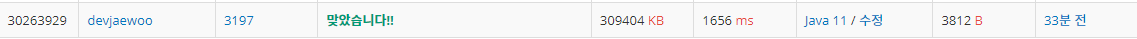 구현 후 제출해봤는데 놀랍게도 한 번에 바로 통과하여 코드 수정 과정이 없다.